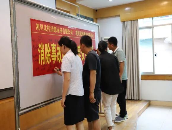 根据凯里市安委办《关于印发<凯里市开展企业安全生产责任落实“双层双向”承诺实施方案>的通知》(凯安办发〔2020〕55号)文件要求及凯里市水务局安排部署,6月29日上午,凯里北控清源水务有限公司、凯里北控供水有限公司举行“双层双向”安全生产责任承诺书签订仪式。凯里市水务局副局长吴波,市安委办行管科科长吴昊出席会议并讲话。